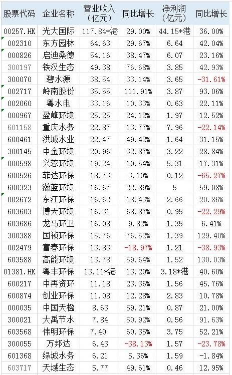 41家环保上市公司半年报数据一览 净利最高涨315%